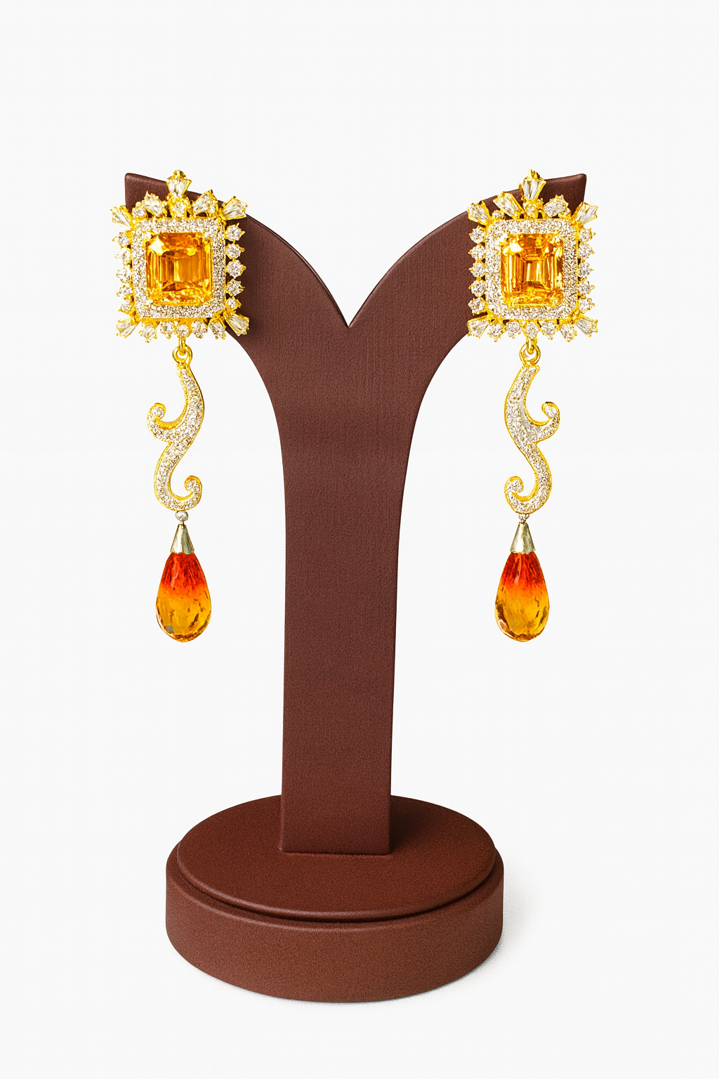 Champagne Cubic Zirconia Sterling Silver 24K Gold plated Neckless With Earrings