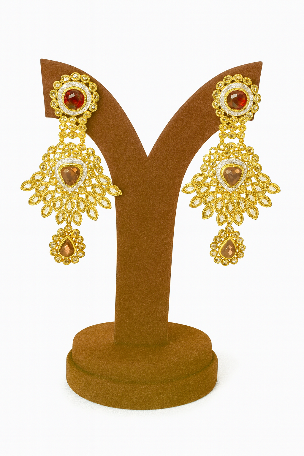 Cubic Zirconia Coffee Champagne Sterling Silver 24K Gold plated Bridal Set