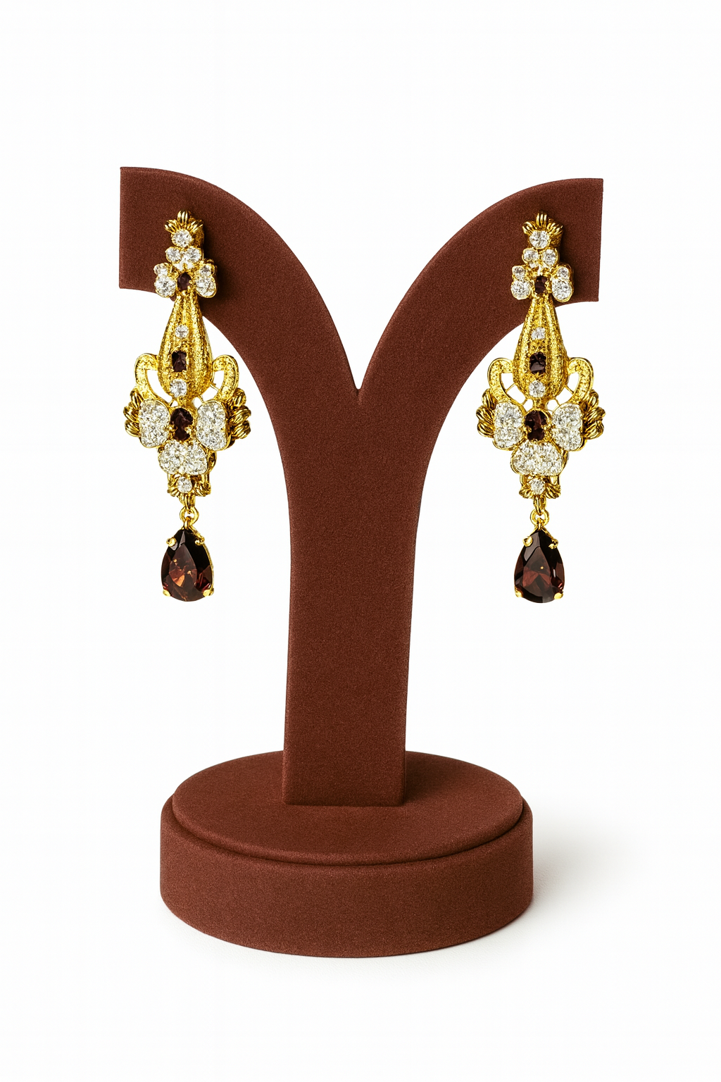 Cubic Zirconia Coffee Champagne Sterling Silver 24K Gold plated necklace with earrings